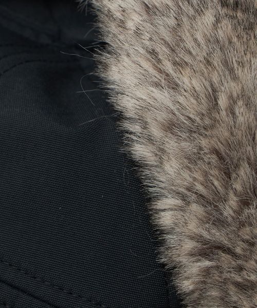 表地にはナイロンオックス生地を採用し、耳当て部分のポリエステル素材のファーは、リアルファーのような色合いと肌触りを再現しています。