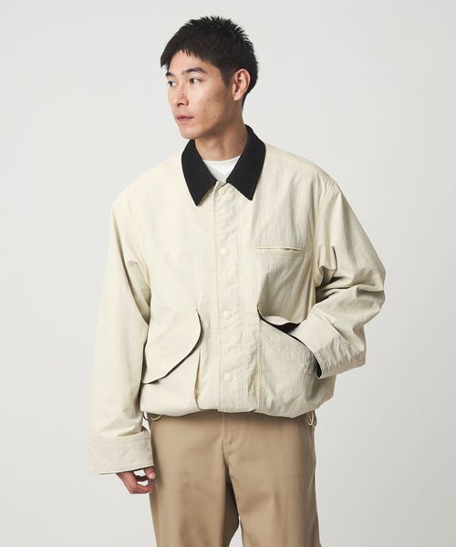 切り替え配色の襟やフラップ裏、袖裏にコーデュロイ生地を効かせた、さりげないディテールも魅力です。