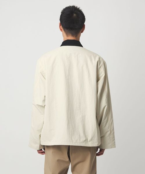 肩幅身幅の広いゆったりとしたシルエットのカバーオールジャケット。