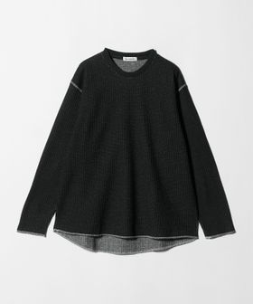 ルーズなシルエットで裾はラウンドカットにしつつ、裾口、袖口、肩周りと配色ステッチが施されています。