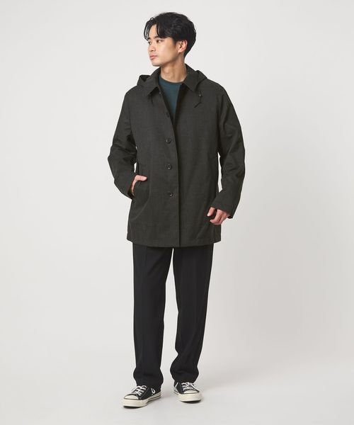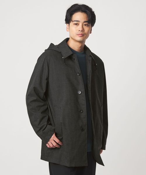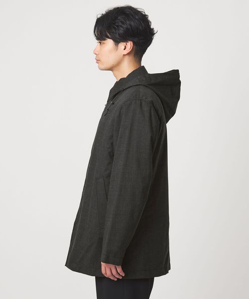 幅広いシーンで活躍するオンオフ兼用フード付きコート