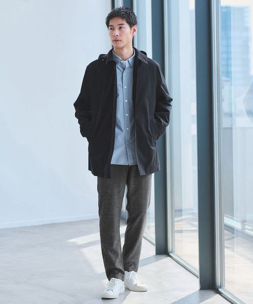 幅広いシーンで活躍するオンオフ兼用フード付きコート