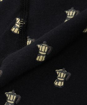 エスプレッソメーカーのイラストがデザインされた「green label relaxing」オリジナルの総柄のボクサーパンツ。