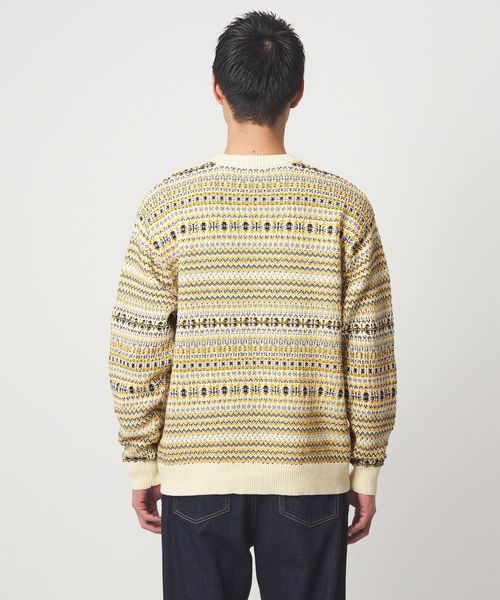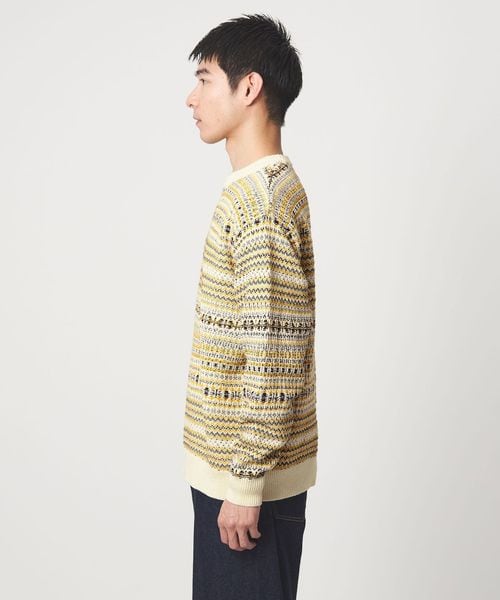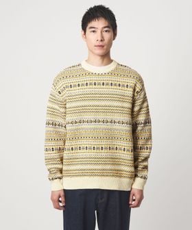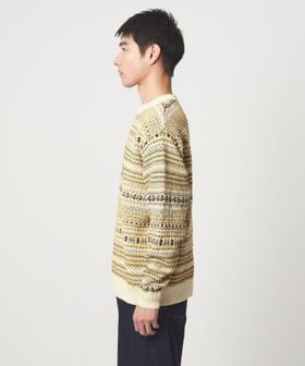 コットン フェアアイル シングルジャガード クルーネック ニット