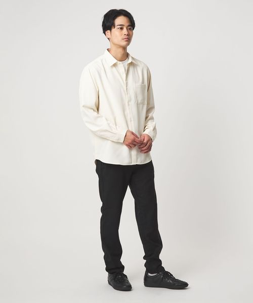 シャツやカーディガン、ジャケットなど、キレイメのトップスで合わせると、大人なキレイメカジュアルの完成。