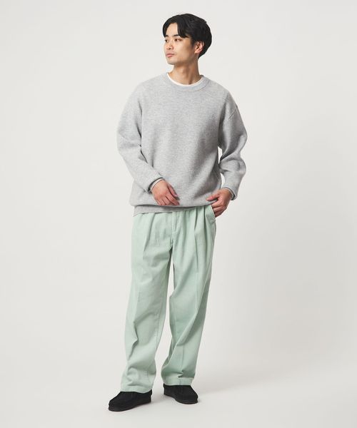 スウェットやフーディ、ニットなどと合わせた、ベーシックなスタイルも品よくまとまっていい感じ◎。
