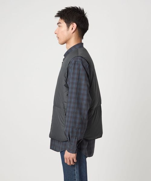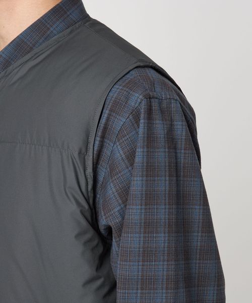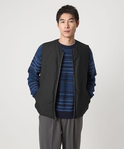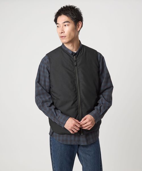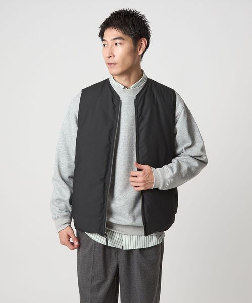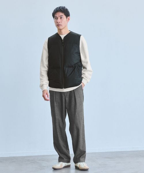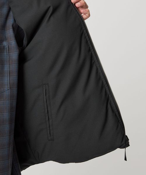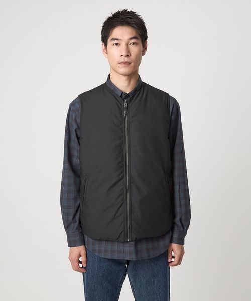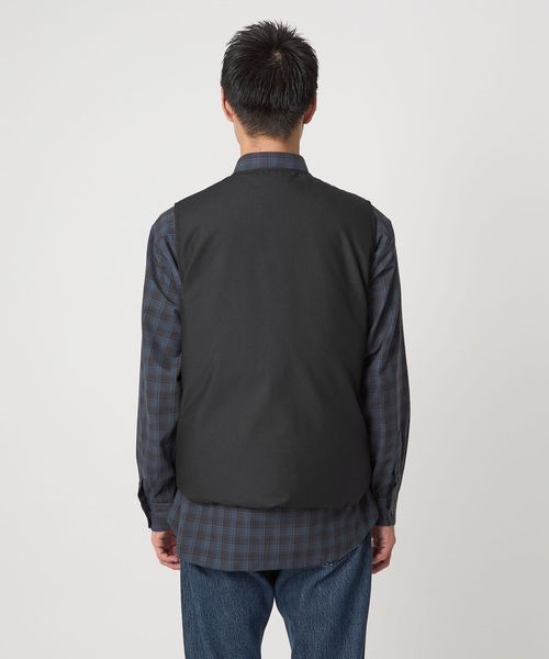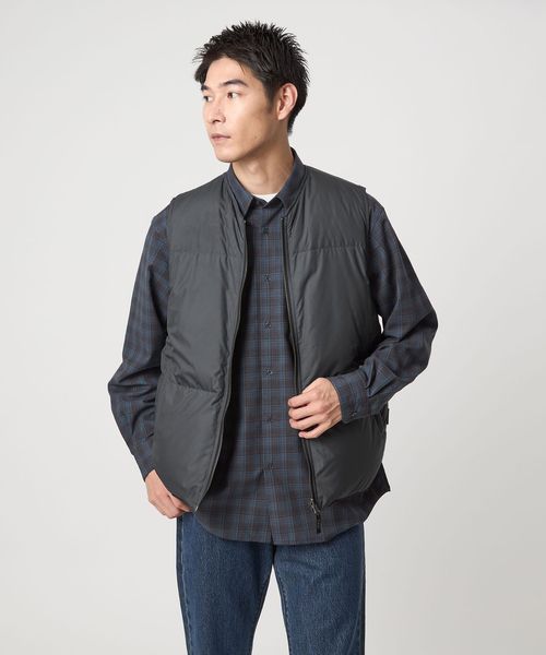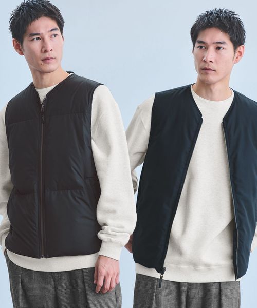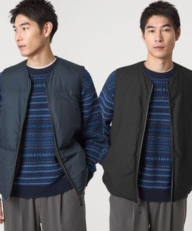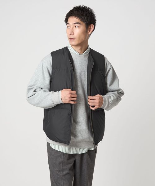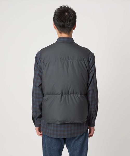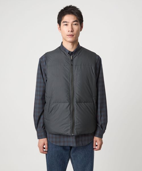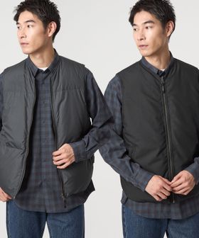 カジュアルな雰囲気の表面ときれいめな表情の裏面の2種類のデザインを楽しめるダウンベスト。