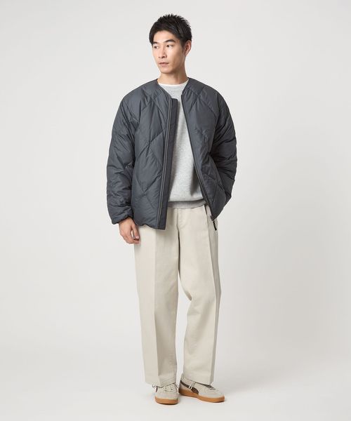 ややゆとりのあるアウターですので、ワイドめなシルエットのパンツを選ぶと〇。