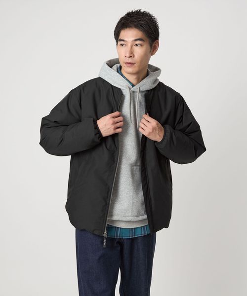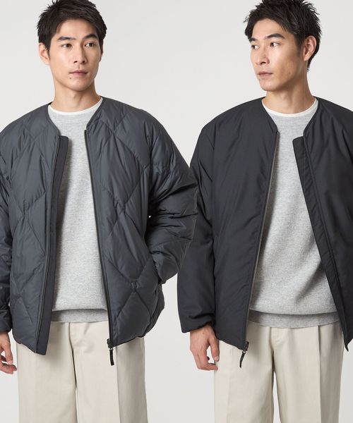 カジュアルな雰囲気の表面ときれいめな表情の裏面の2種類のデザインを楽しめるダウンジャケット。