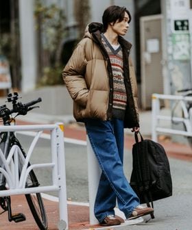 きれいめな表情の表面とカジュアルな雰囲気の裏面の2種類のデザインを楽しめるダウンブルゾン。