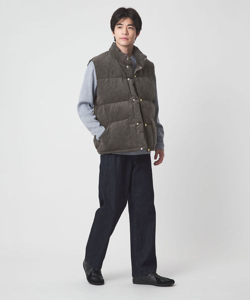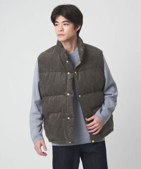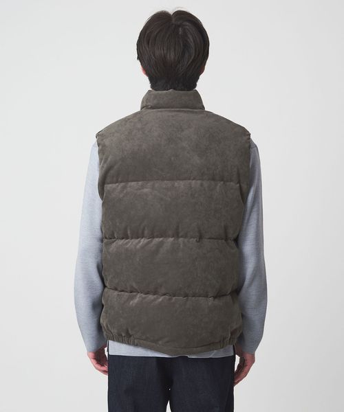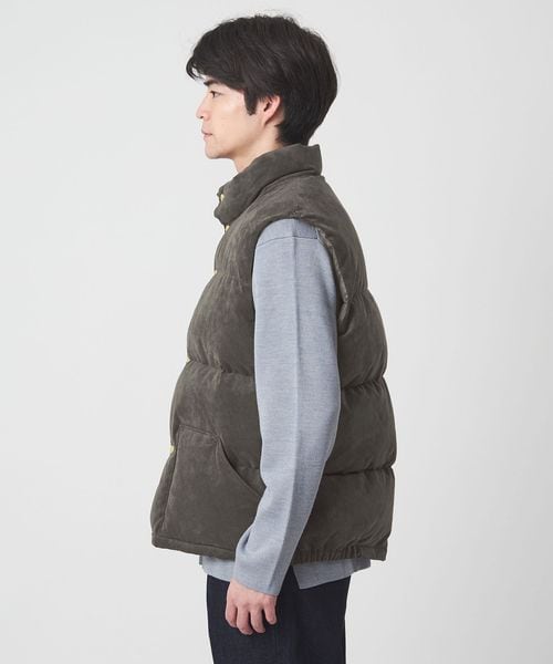 ・表地にソフトな手触りや上質な発色が特徴のUltrasuede(R)を使用したダウンベスト