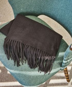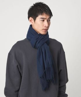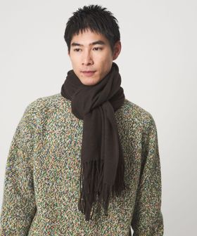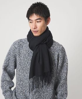 ニットやスウェットなどのトップスに、大判のボリュームマフラーを合わせたスタイリングなども今の気分。