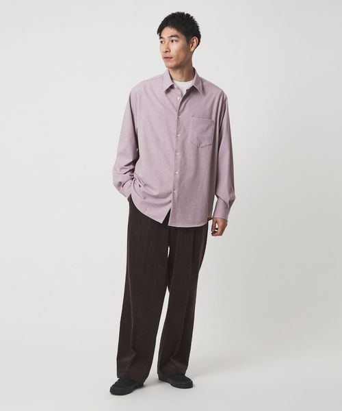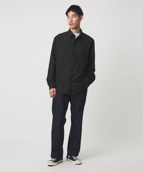 ゆったりとしたシルエットのシャツなので、ワイドストレートやテーパードパンツなどのクリーンでゆとりのあるボトムスと相性が◎。