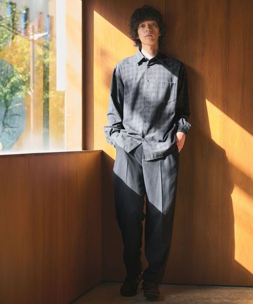 ゆったりとしたシルエットのシャツなので、ワイドストレートやテーパードパンツなどのクリーンでゆとりのあるボトムスと相性が◎。