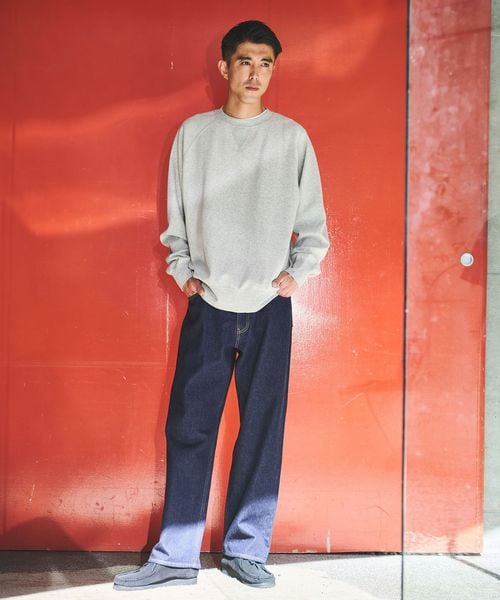 ゆったりとしたラグランスリーブのクルーネックスウェットです。