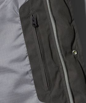 ・胸にはシーム利用のファスナーポケットを装備