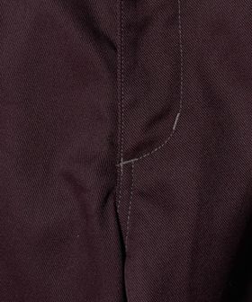 背面の両玉縁ポケットや、シックなカラーのポリエステルコットン地に映えるステッチカラーが、特徴的で目を惹きます。
