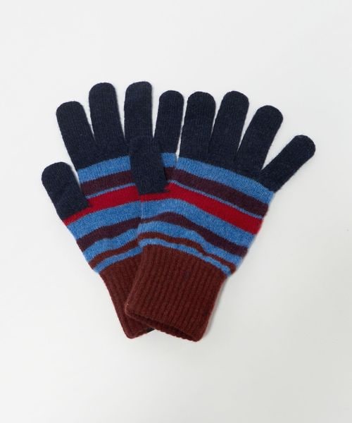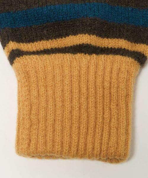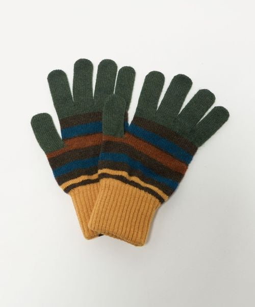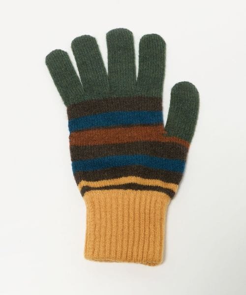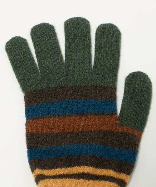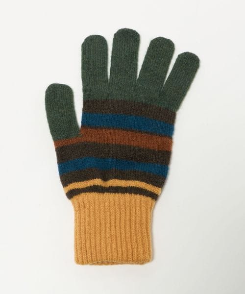 多色使いのボーダー柄が目を惹く、ニットグローブです。