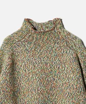 身頃からの編み続きになっているネックデザインで、天竺ロールの仕様がポイント。