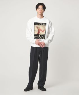 やや短めのすっきりとした着丈に、ワイドシルエットのサイズバランスが特徴のクルーネックスウェットです。