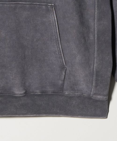 トレンド感のある加工が特徴の裏毛パーカー