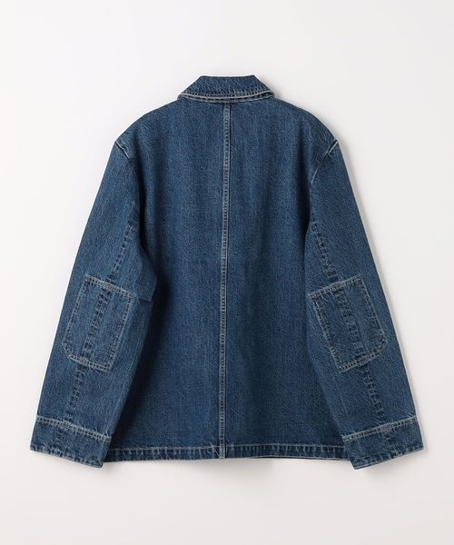 ウォッシュドデニムのワークウェアスタイルジャケット.