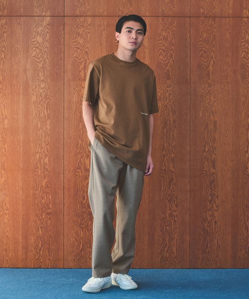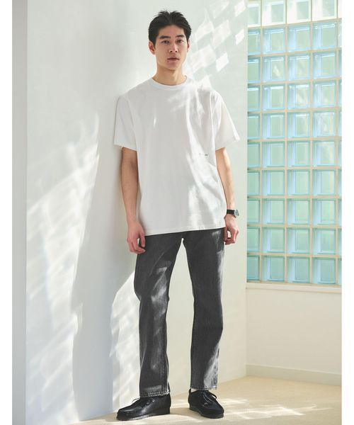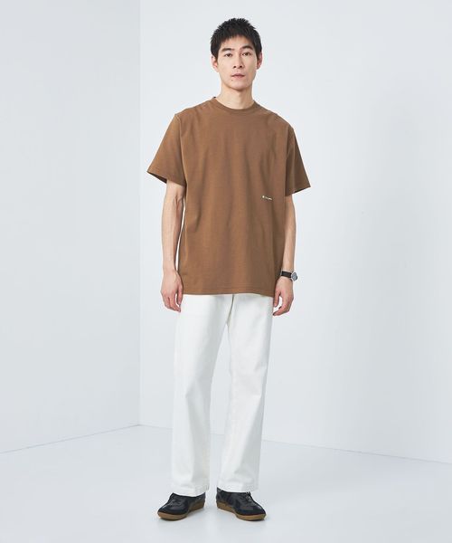 コットンを使用した、ほどよくゆとりがあるシルエットの半袖Tシャツ。