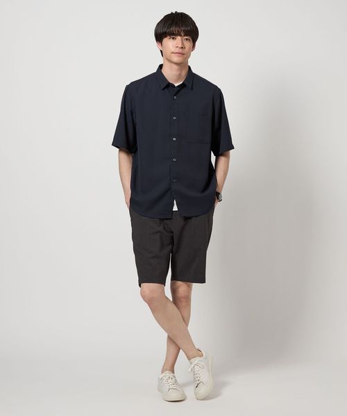 ソフトなドレープ感で上品な見た目に仕上げた半袖シャツ。