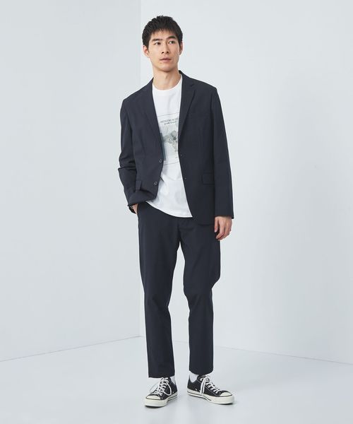 ノッチドラペルやフラップポケットなどスタンダードなデザインながら、着丈はすっきりめで袖・裾にはステッチが入っていたりと、ややカジュアルな印象です。