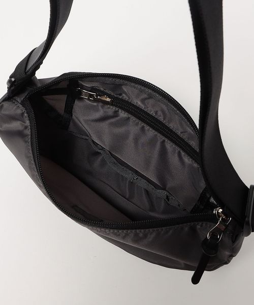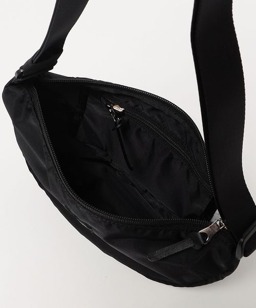 ポーチサイズになるパッカブルタイプの半月型ショルダーバッグ。