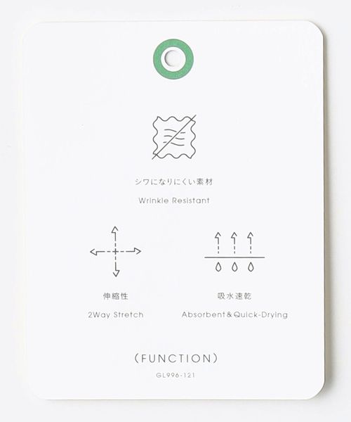 機能性:防シワ(着用時シワになりにくい)、2WAYストレッチ、吸水速乾