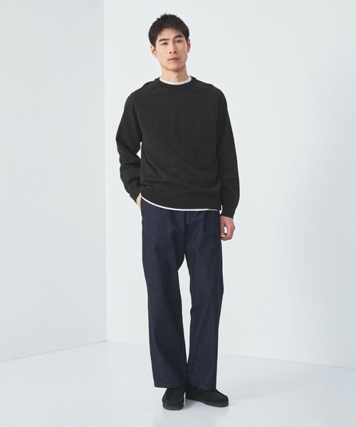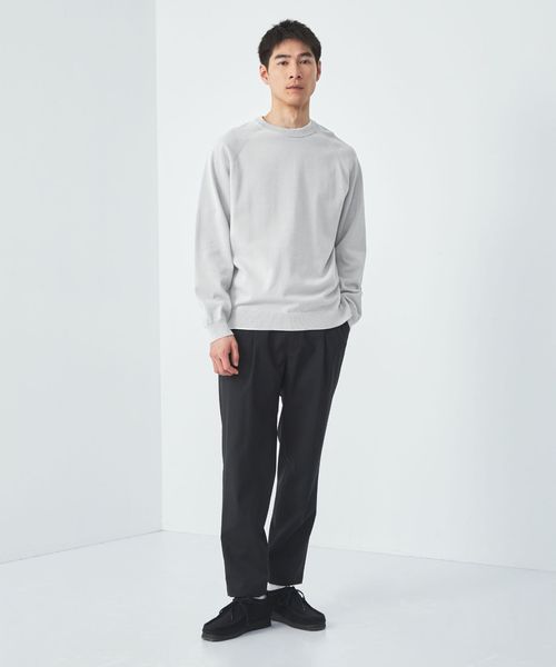 ラグランスリーブや袖と裾に入ったリブ仕様も、抜け感のある雰囲気を演出します。