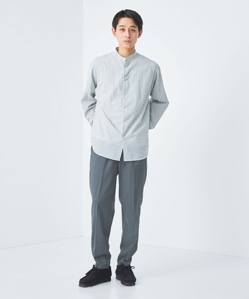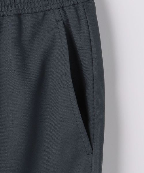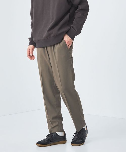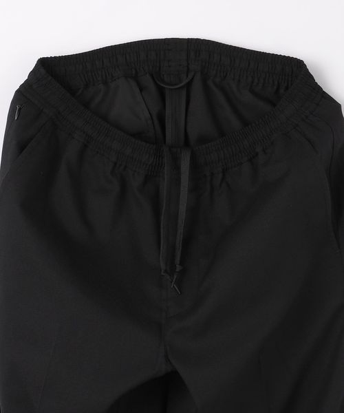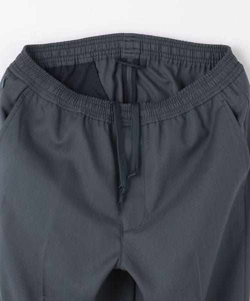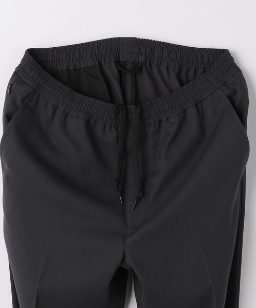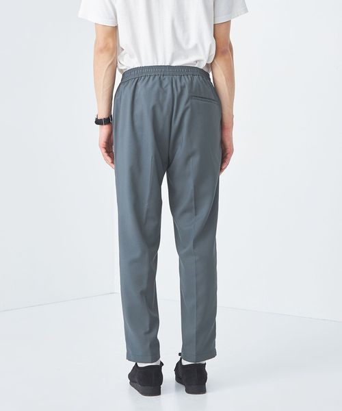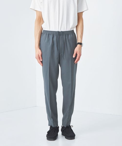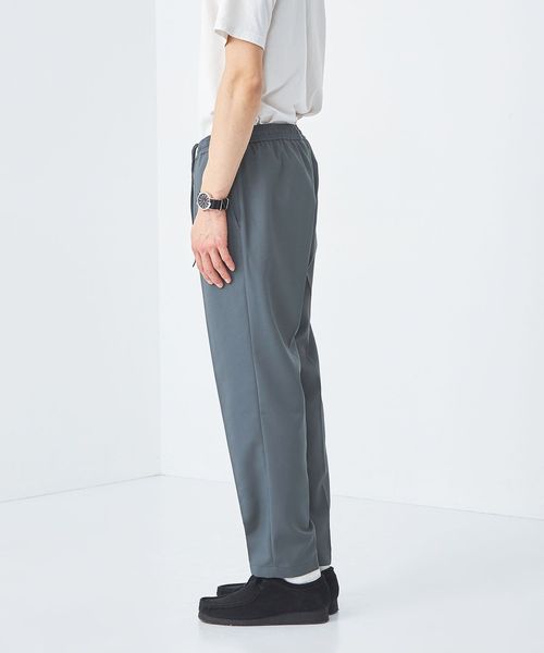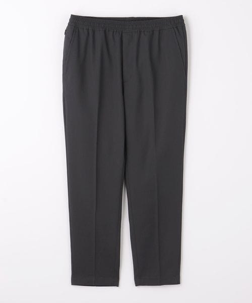 リラックスしたウエストイージー仕様ながら、クリース入りデザインや前開きファスナーが絶妙なバランスです。
