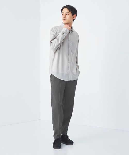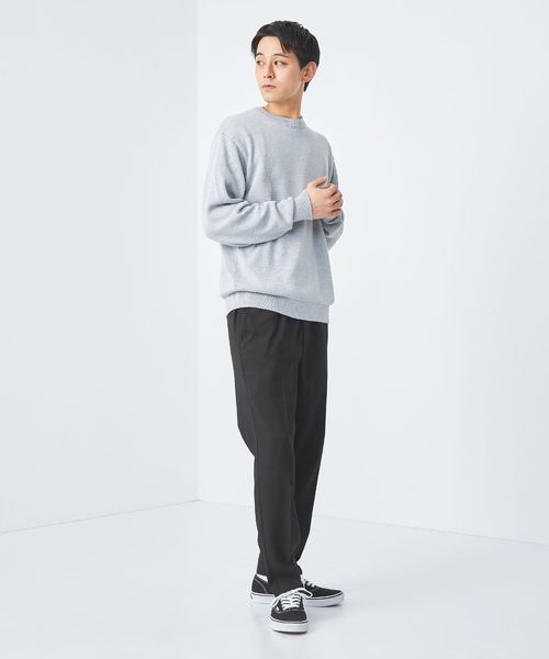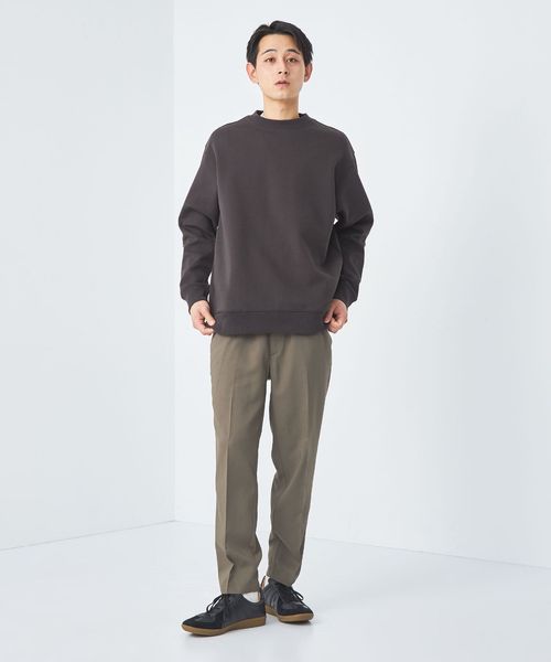 Tシャツやスウェットなどのカジュアルなトップスも、クリース入りデザインが上品に演出。