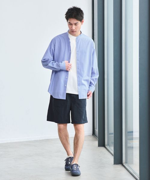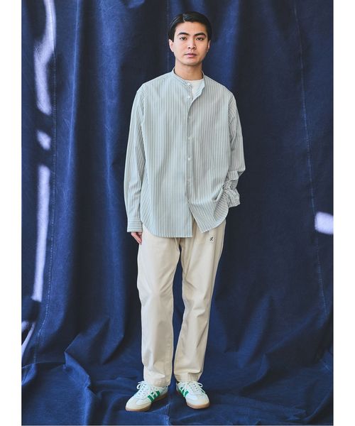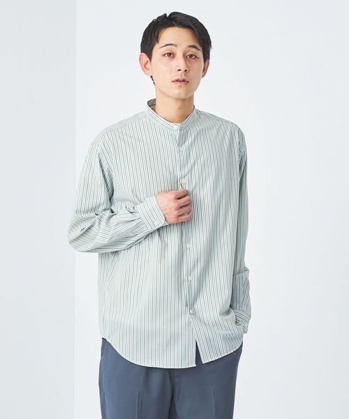 green label relaxing定番の「ジャストルーズ型」の春夏新作、ストライプ柄バンドカラーシャツが登場