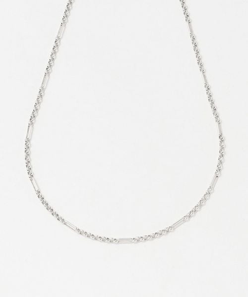 小さなリングと長さの異なるパーツが等間隔で並んだネックレス。