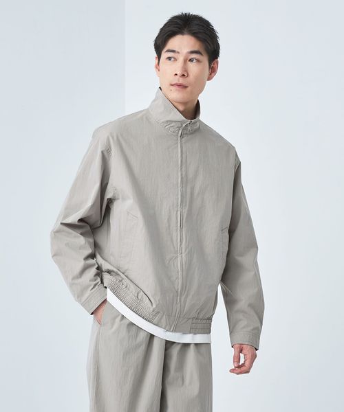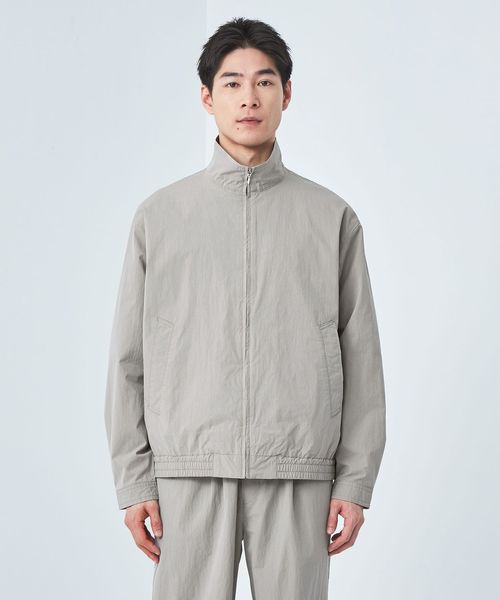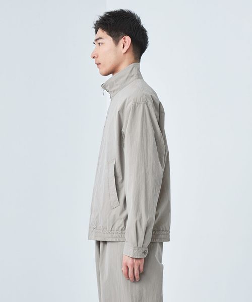 高密度に織った生地を加工したクリーンな雰囲気のブルゾン。