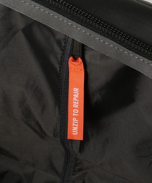 リサイクル・ポリエステル製のリップストップを使用し、マット仕上げのリサイクル・TPU(サーモプラスチック・ポリウレタン)フィルムでラミネート済み。
