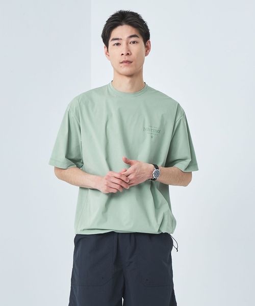 <Marmot>が開発した独自の加工糸を採用したラッシュガードTシャツ。