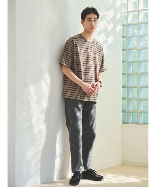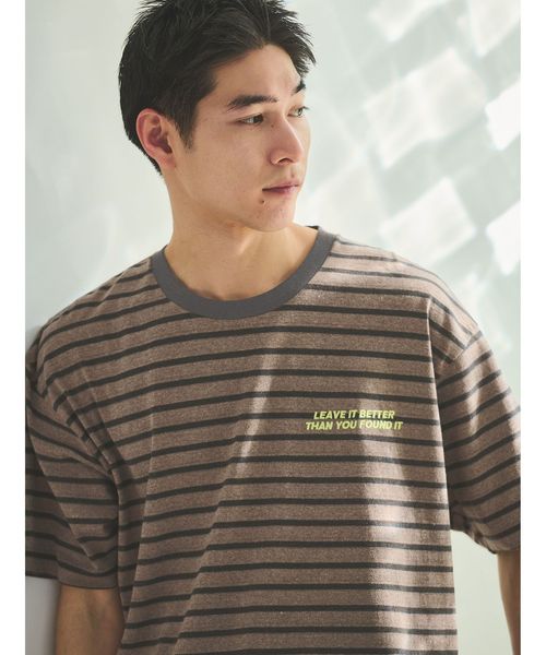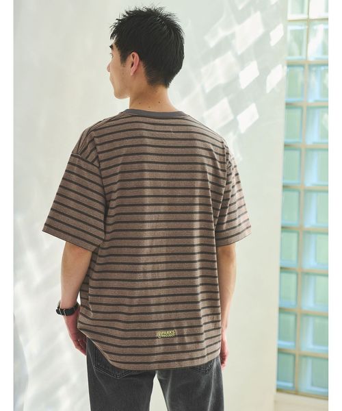【別注】<PARKS PROJECT>GLR オーバーダイ ボーダー ブラウン Tシャツ