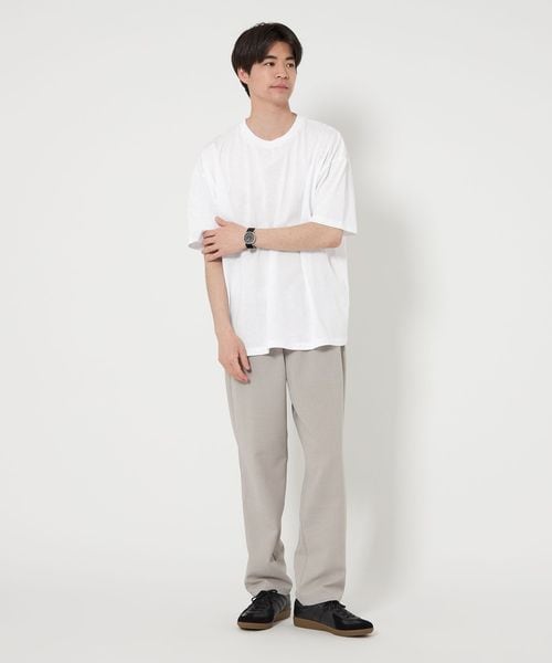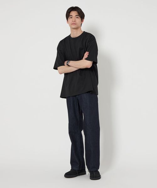 すっきりした着丈と広い身幅のバランスが、色々なボトムスと相性が良く着回しのしやすい一着。
