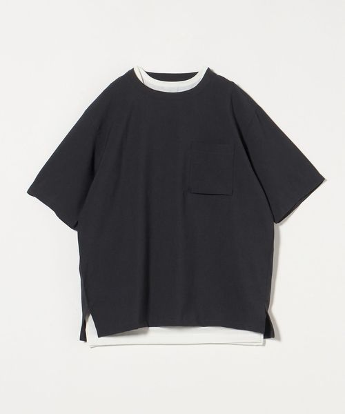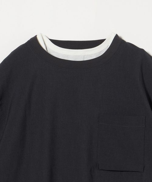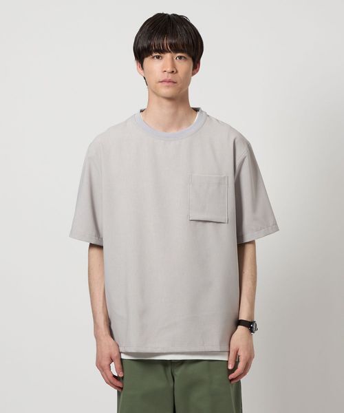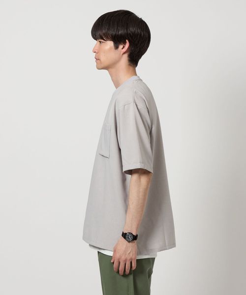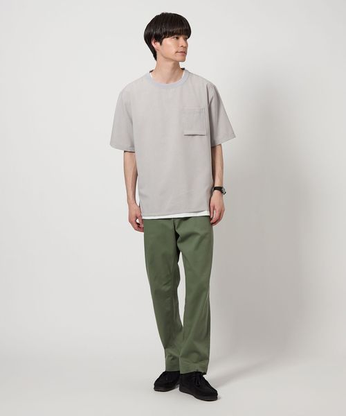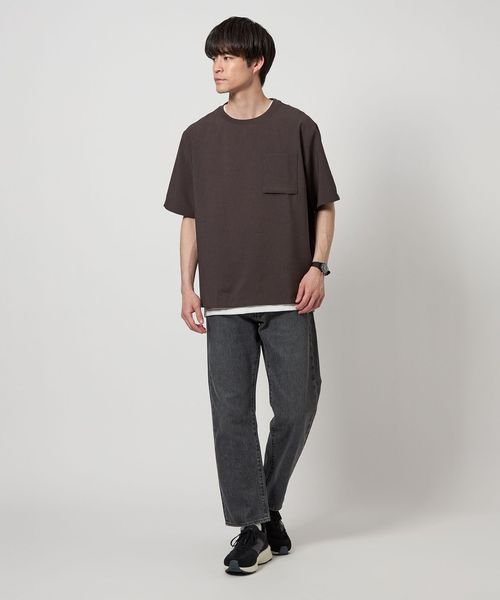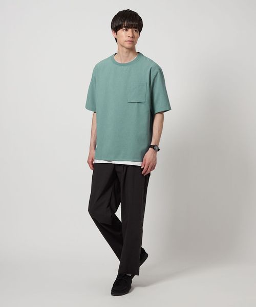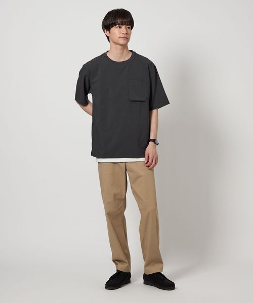 Tシャツはシンプルなポケット付きでクリーンな印象。