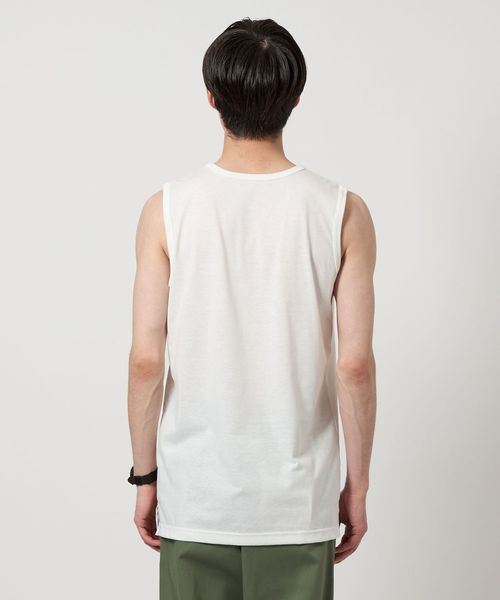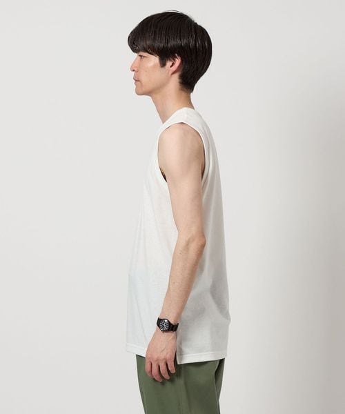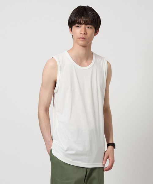 Tシャツのハリコシある布帛とタンクトップの柔らかな風合いの素材のメリハリがスタイリングにアクセントをプラスしてくれます。