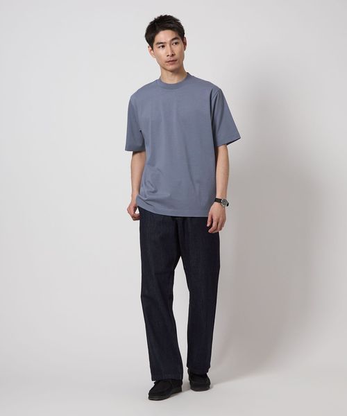 広めのネックで首元にきちんとした印象を与えてくれる無地Tシャツです。