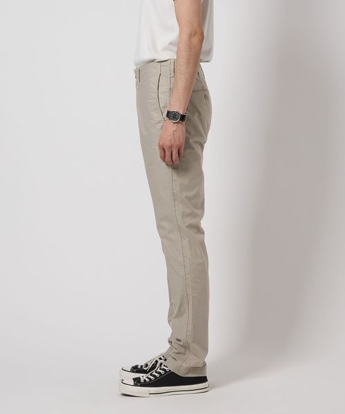 定番で着回しの利く、スリムシルエットのチノパンです。