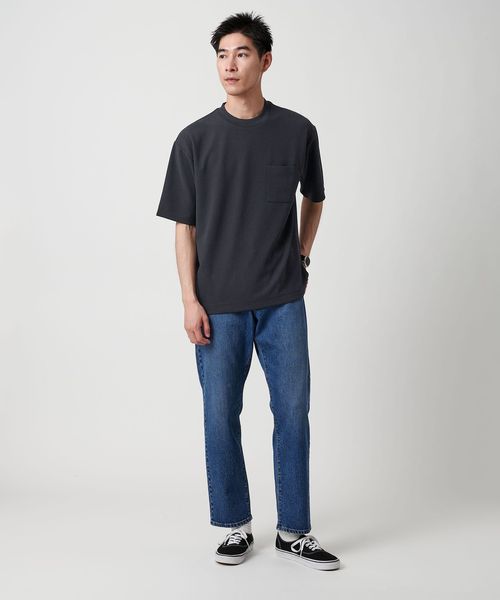 スクエア型のフロントポケットとピスネームがさりげないアクセントになっています。