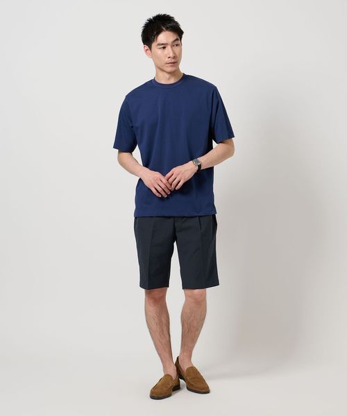 大人の上品なカジュアルスタイルに取り入れやすいショートパンツ。