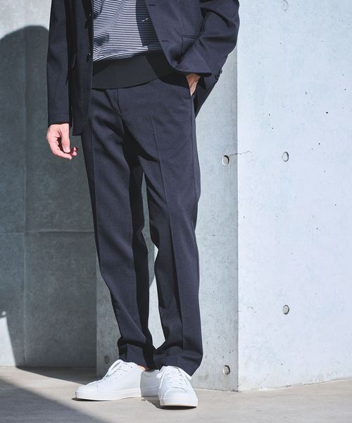 上下とも程よく細身なシルエットで仕上げているので、カジュアル使いからドレスカジュアルまで幅広く活躍します。