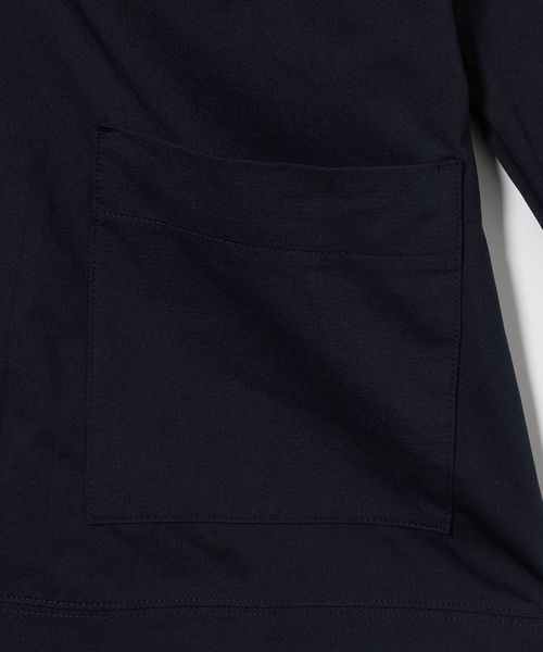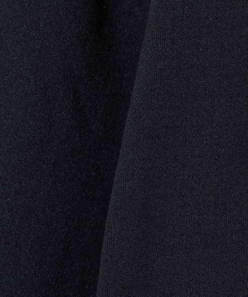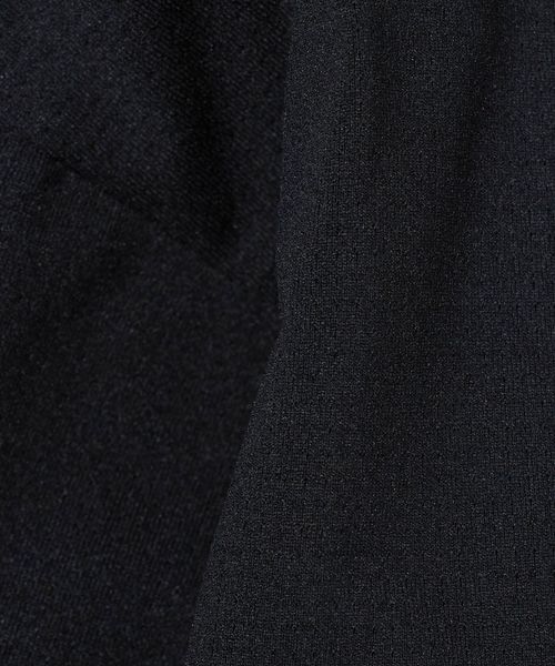 ネックや袖口、裾など切り替えに共地を使用し、ミニマルでクリーンな印象に仕上げています。