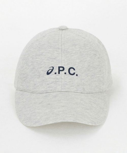 A.P.C. x Asicsロゴ入り杢グレーのキャスケット。